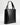Black leather bag from Merryl Tielman. A sophisticated multi-use carryall. Generous in size with curves set off by architectural adornments. Features one spacious compartment with an inside slip pocket for small essentials. Can be carried by hand or over the shoulder.