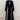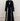 Black wool blend coat from By Cookie H. Featuring flared body construction, fabric flower embellishment, and contrasting inserts that provide volume when moving.