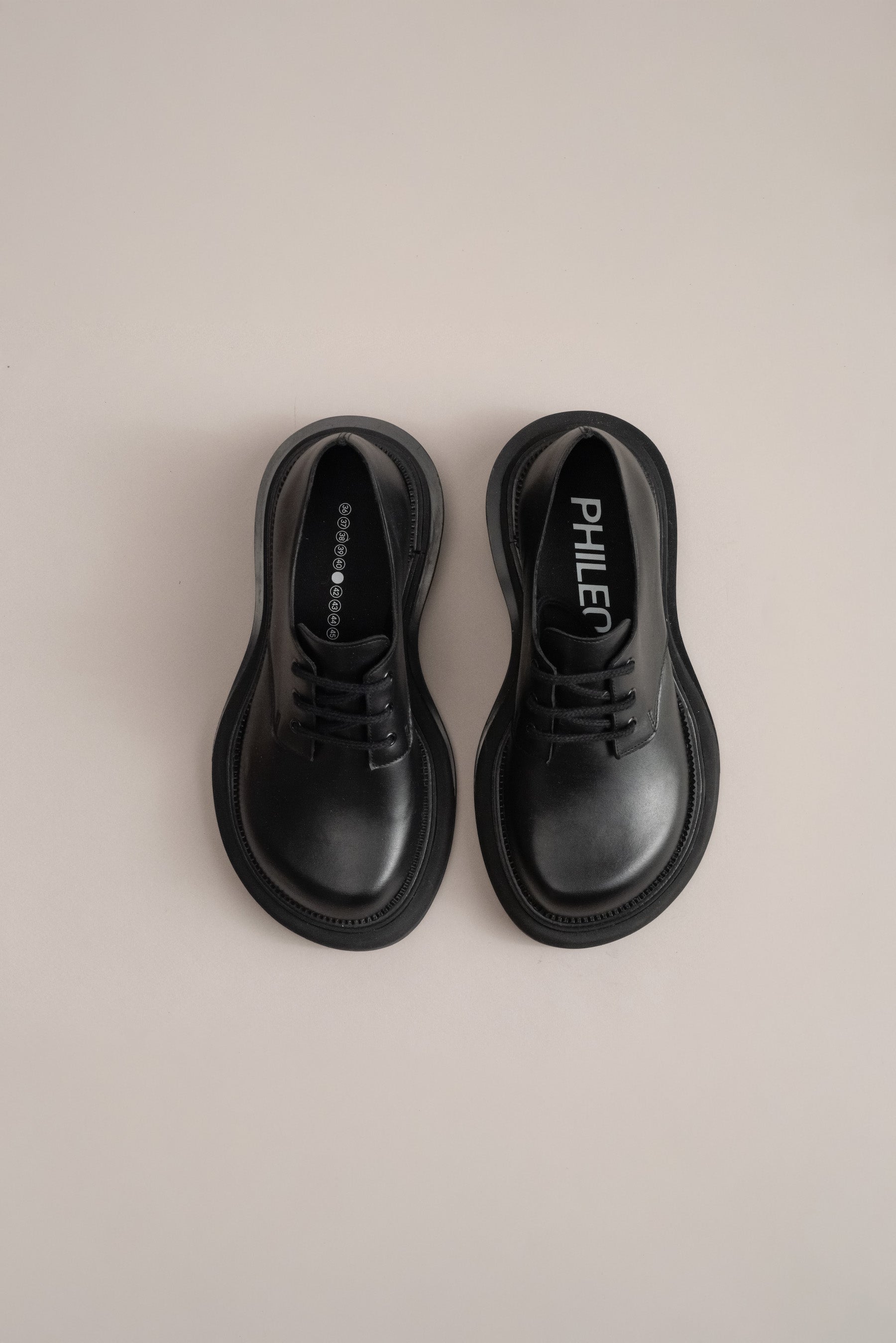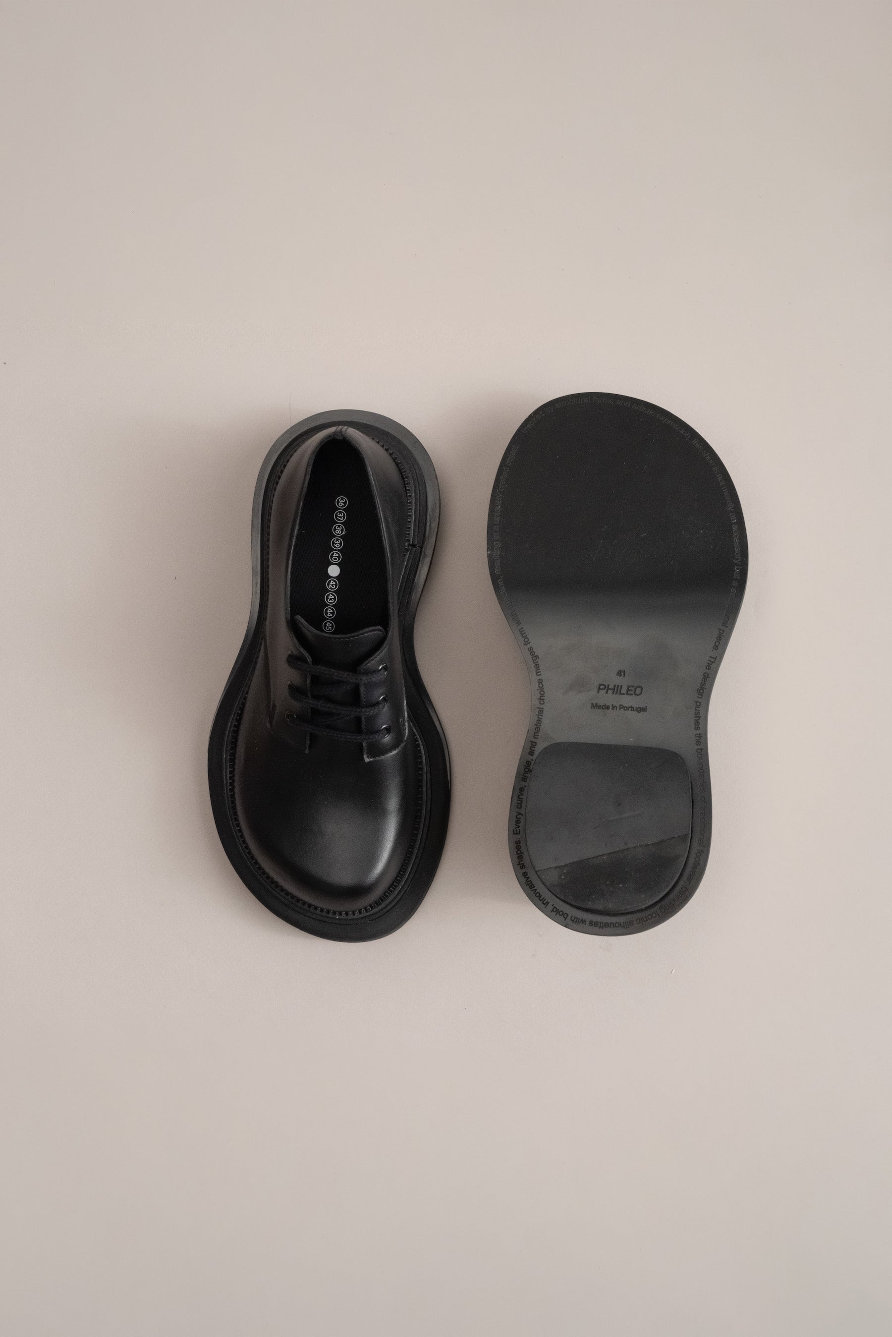 Initially inspired by Philéo’s grandad shoes, the 066 - DERBY Super (Leather, Black) offers a contemporary twist on a traditional Derby construction. While the upper retains the timeless elegance of traditional Derby construction, the expanded sole introduces bold volume and modernity. Refined stitching adds a final layer of sophistication, staying true to PHILEO’s commitment to thoughtful craftsmanship.