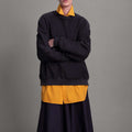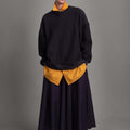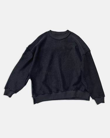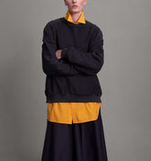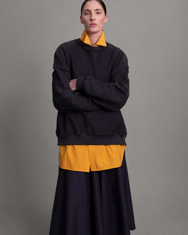 The Mechanic is a relaxed, oversized jumper made of loopback twill cotton jersey, presented inside out for a soft textural finish and featuring external seams.