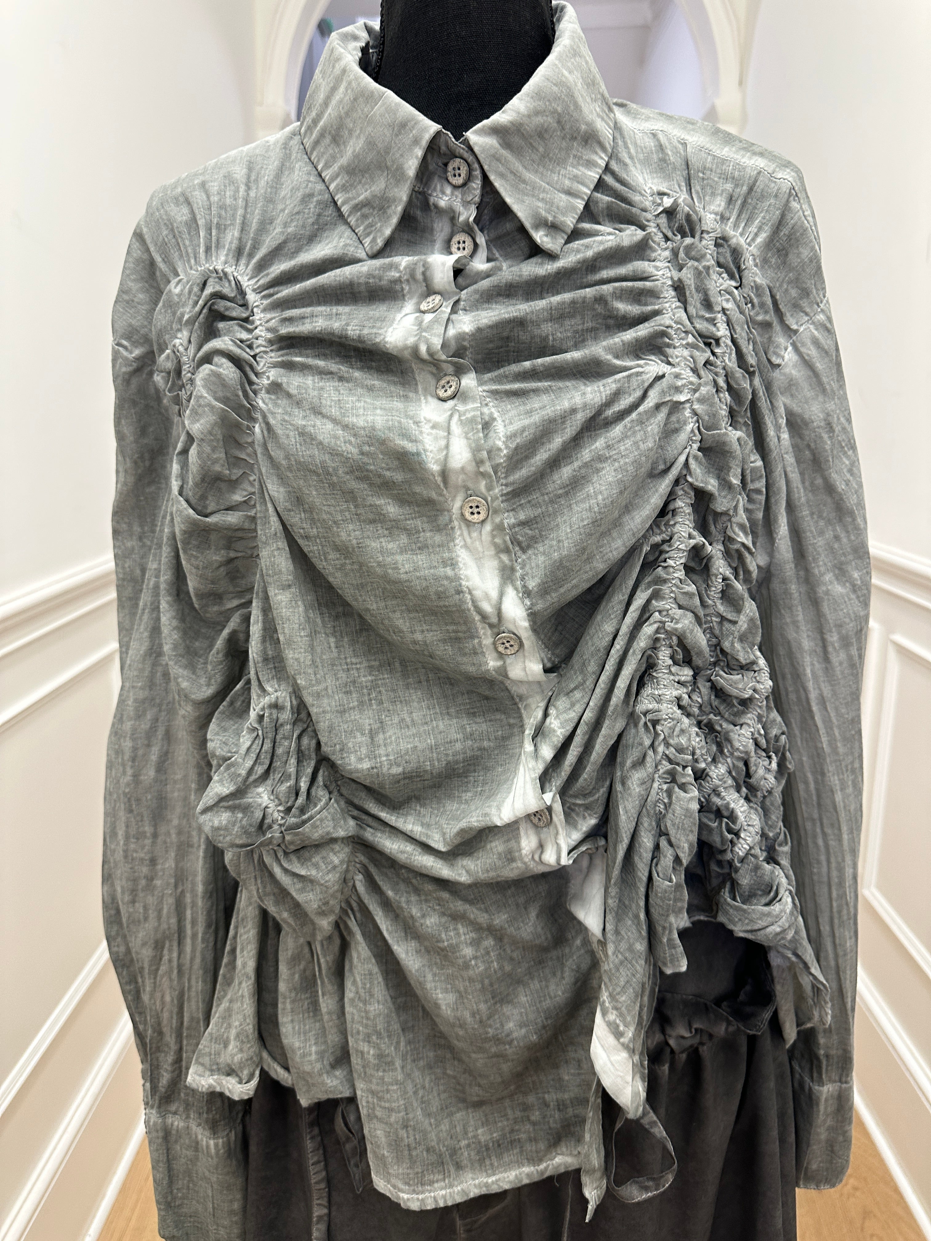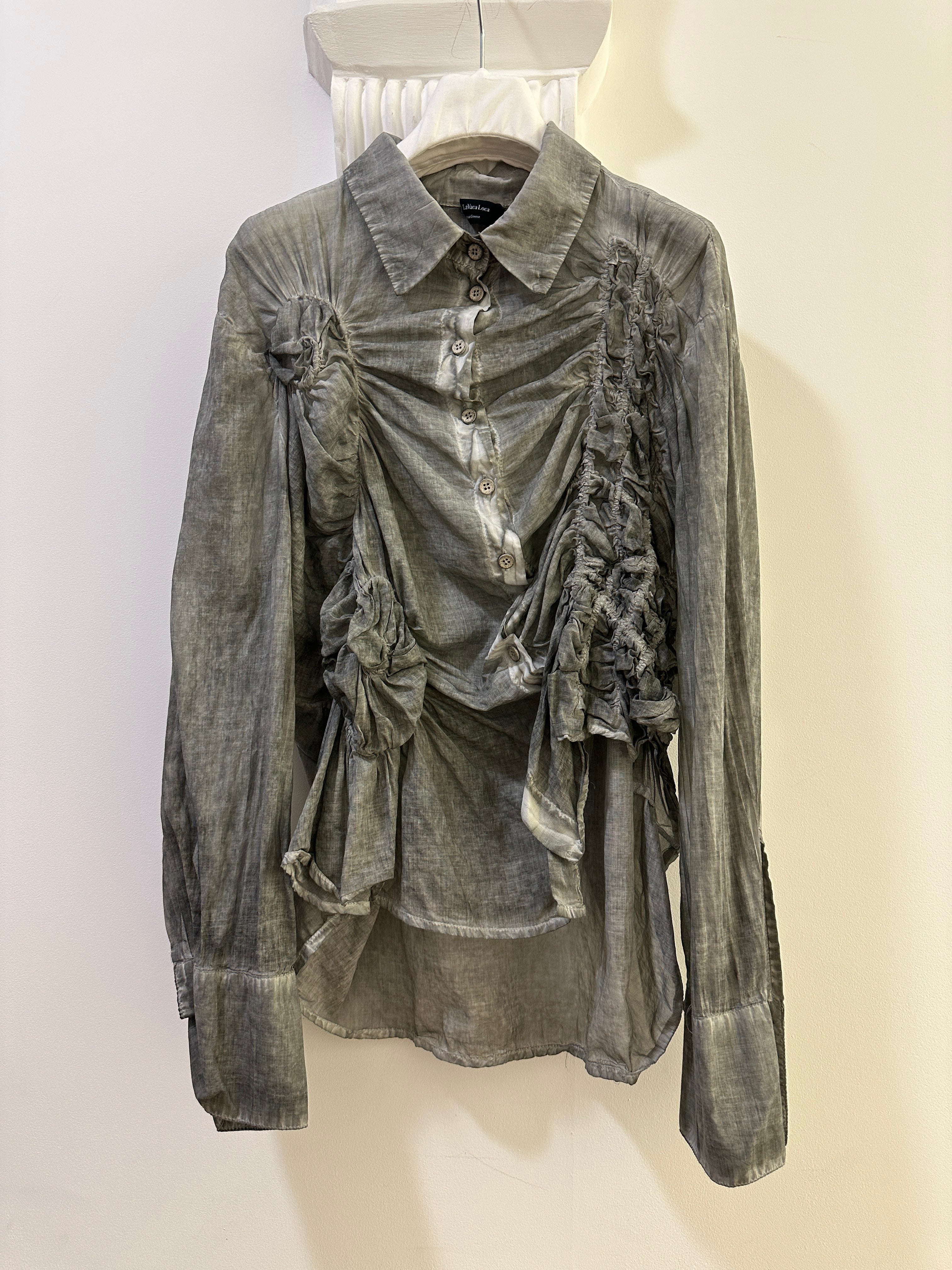 Beautiful shirt with all the gathering details which creates the textures from La Vaca Loca.
