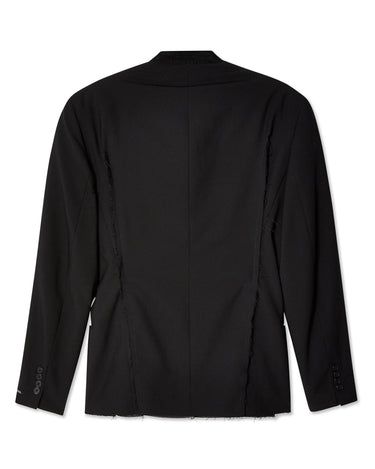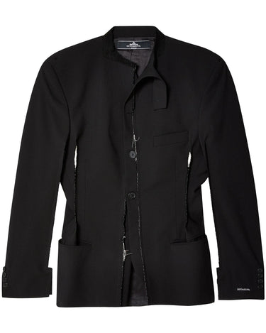 Black cotton jacket from Hodakova. Raw-cut single-breasted blazer with distressed effect raw-cut edge.